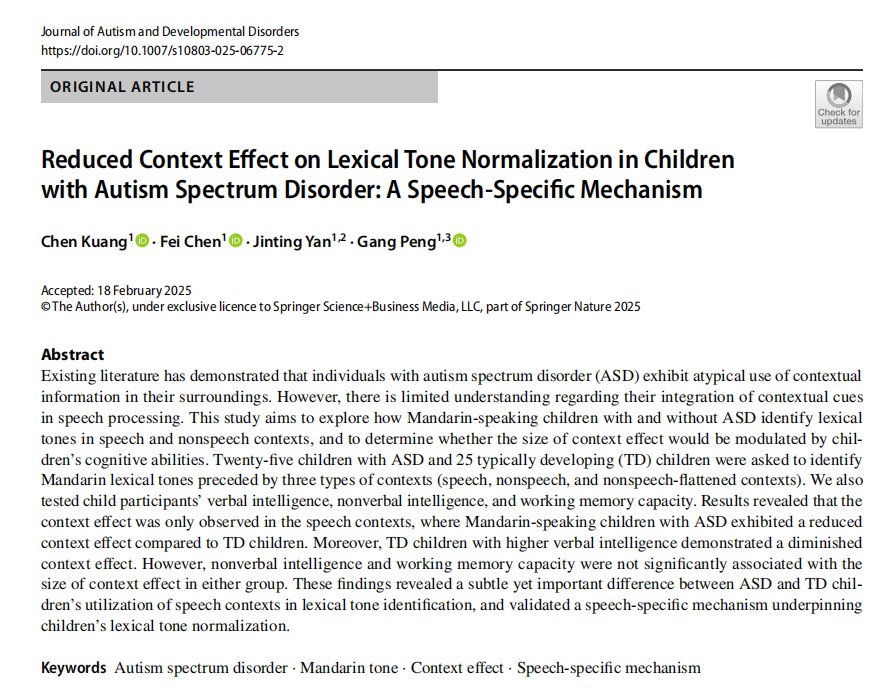 匡晨、陈飞等在Journal of Autism and Developmental Disorde...
