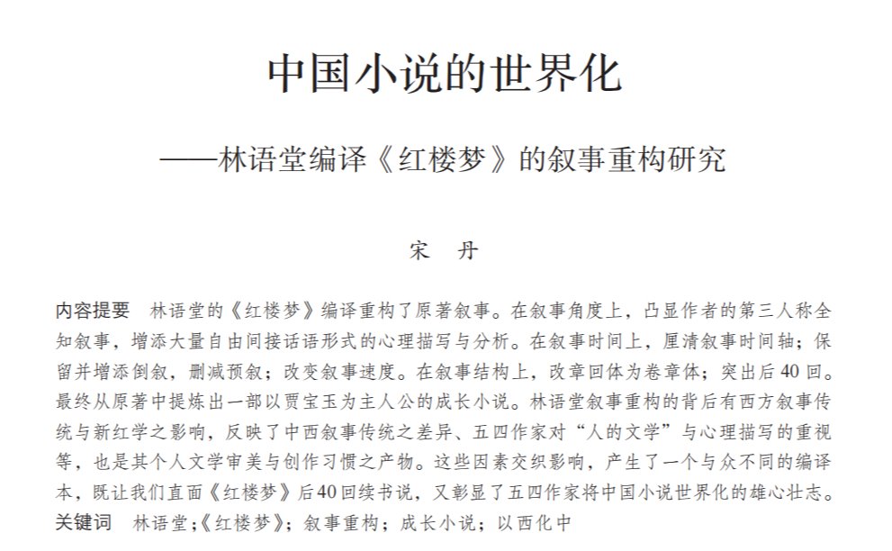 宋丹在《文学评论》发文:中国小说的世界化——林语堂编译《...